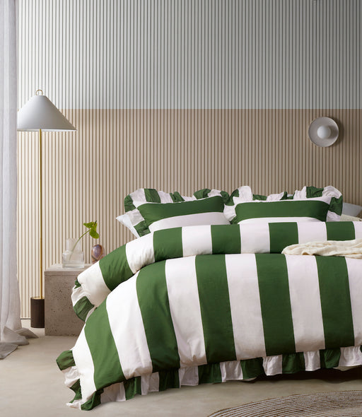 The New Vintage Design Candy Ruffle Washed Cotton Quilt Cover Set is simply just wonderful! Thick stripes are a the new season must have and will e...