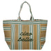 - Colour: Yellow with green and white stripes with machine stitched letters in red.