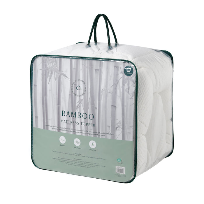 The Accessorize Bamboo Mattress Topper is the ultimate in luxury bedding. Made from a blend of 1200gsm bamboo and polyester fibre fill, this adds a layer of soft and comfortable cushioning, resulting in a more restful sleep.