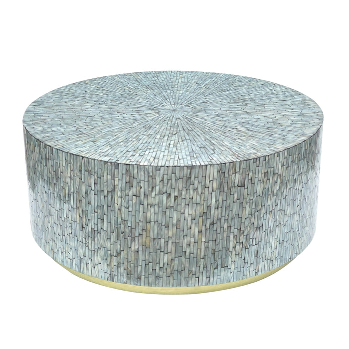 Immerse your living space with an oceanic touch the Aquarius Mother Of Pearl Hand Made Coffee Table. Each unique piece is handcrafted with exquisite mother of pearl detailing, bringing a whimsical and charming element to your home.