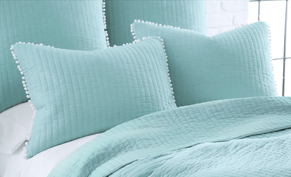 Clavo Pom Pom 100% Cotton Coverlet Set - Light Blue