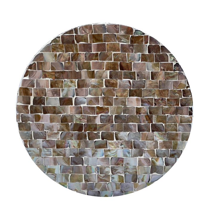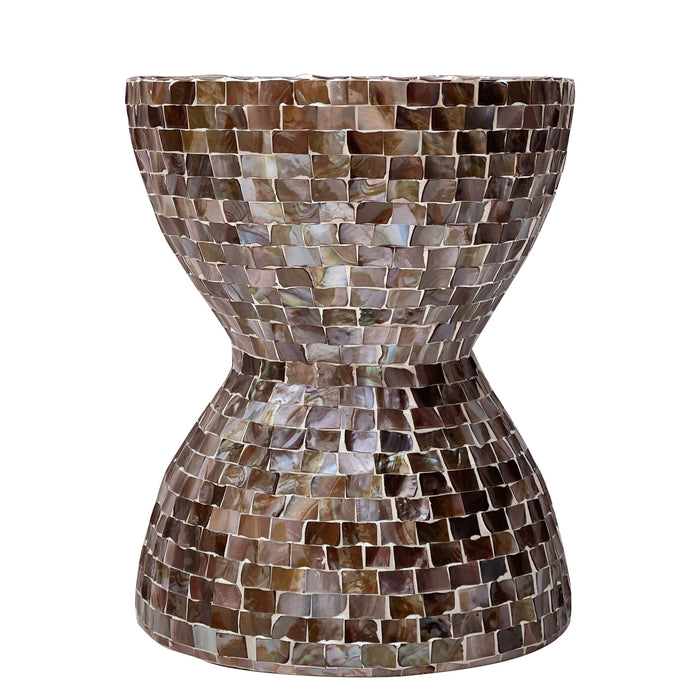 Enhance your space with a touch of opulence. This stool or side table features handcrafted mother of pearl in a sophisticated toned finish, giving your home a refined and luxurious feel.